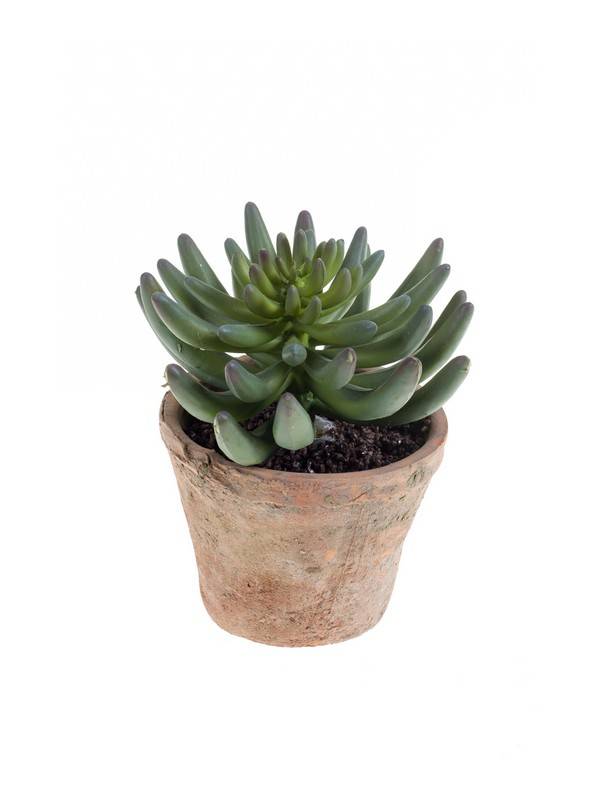 Sedum rupestre artificial EROS en maceta de terracota, verde, 15cm