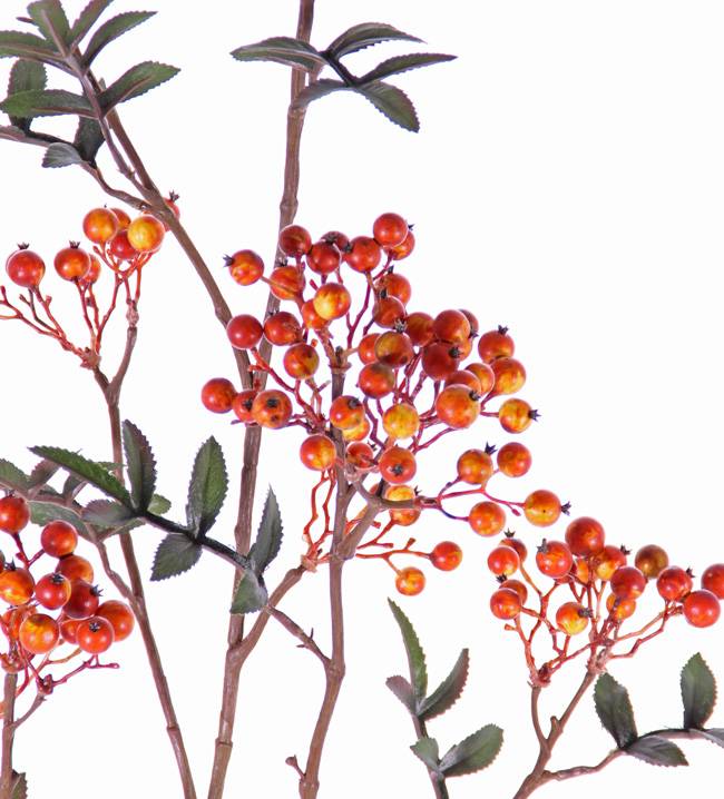 - Con aprox. 5 ramilletes de bayas de color narnaja y aproximadamente 2 ramas con hojas en verde