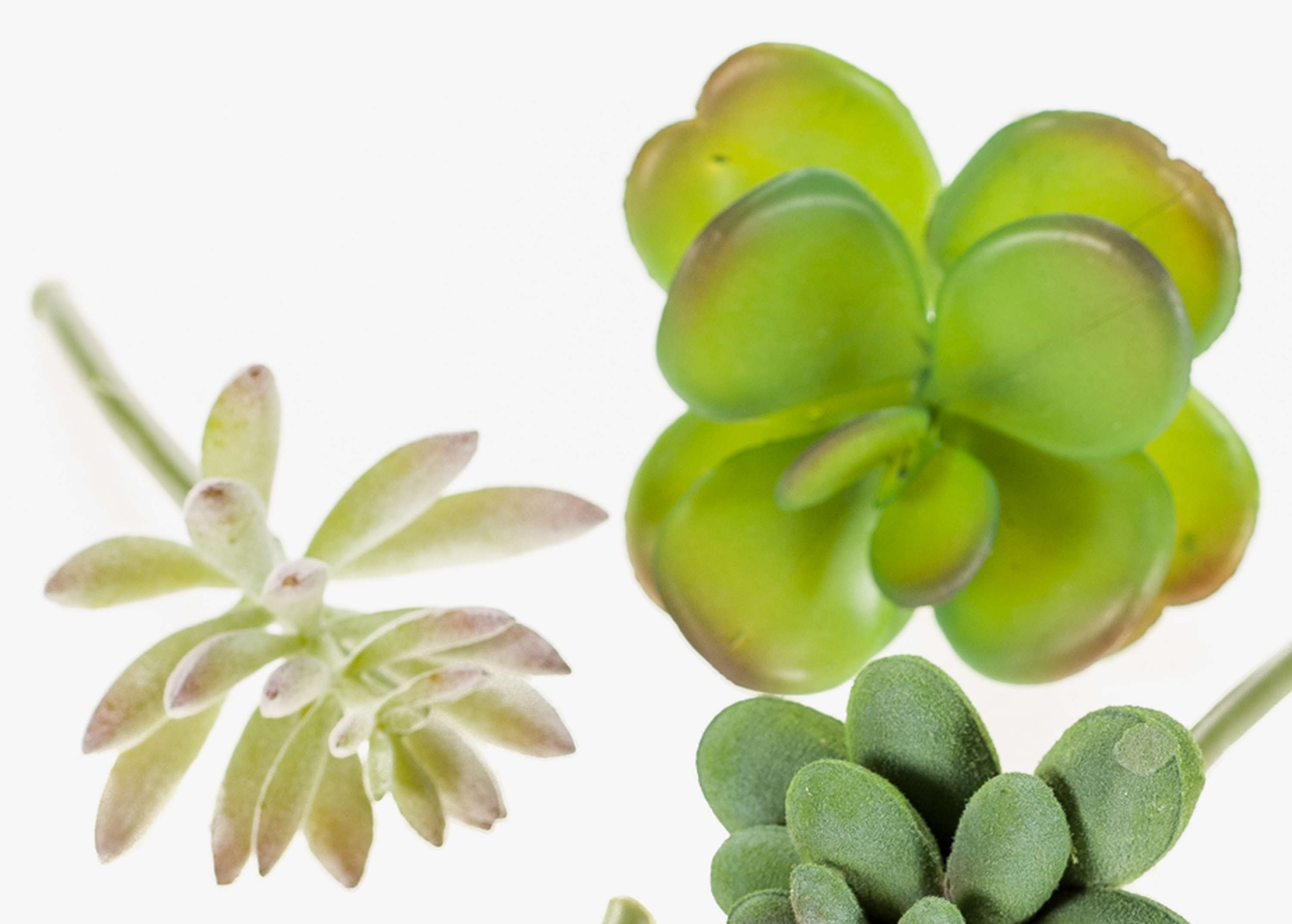 JADON es un conjunto de diferentes suculentas (arbol de jade, Graptopetalum, Aeonium, Echeveria, Peperomia ferreyrae, Pachyphytum hookeri). Los palos de fijación hacen ofrecen infinidad de pposibilidades para sus ideas decorativas, ya que pueden organizar las pequeñas plantas artificiales individualmente o juntas en macetas, cuencos o maceteros.