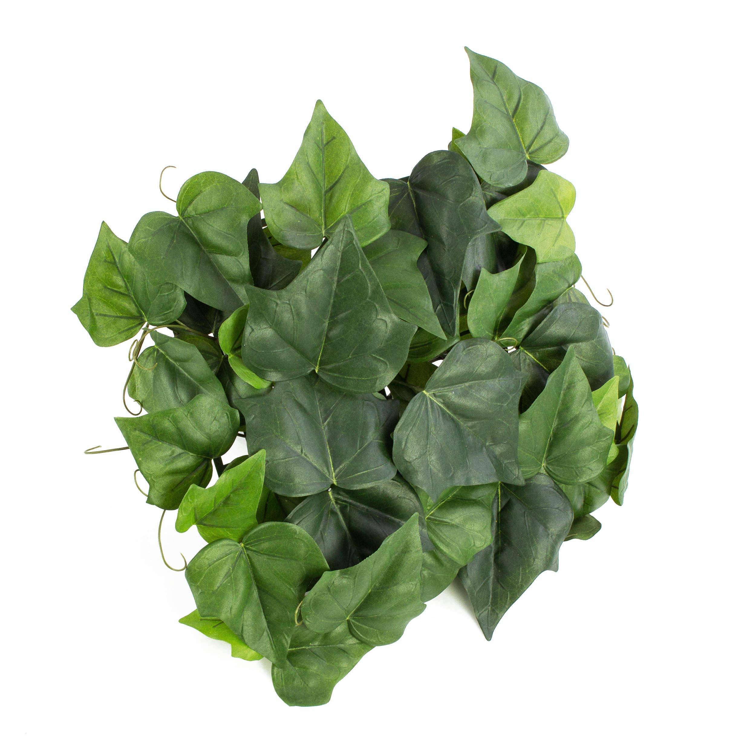 - aprox. 50 hojas de color verde claro y oscuro en forma de corazón de diferentes tamaños, hechas de fibra textil de alta calidad con la típica forma de hoja de hiedra