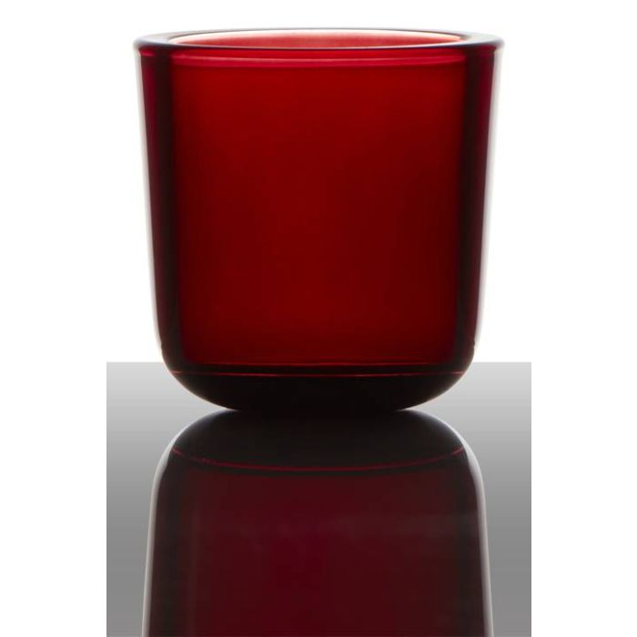 Soporte de cristal para vela de té NICK, rojo oscuro, 7,5cm, Ø7,5cm