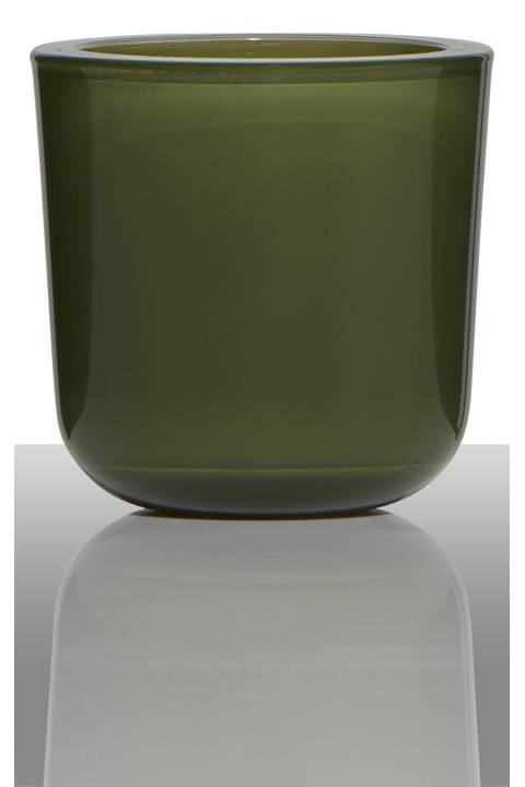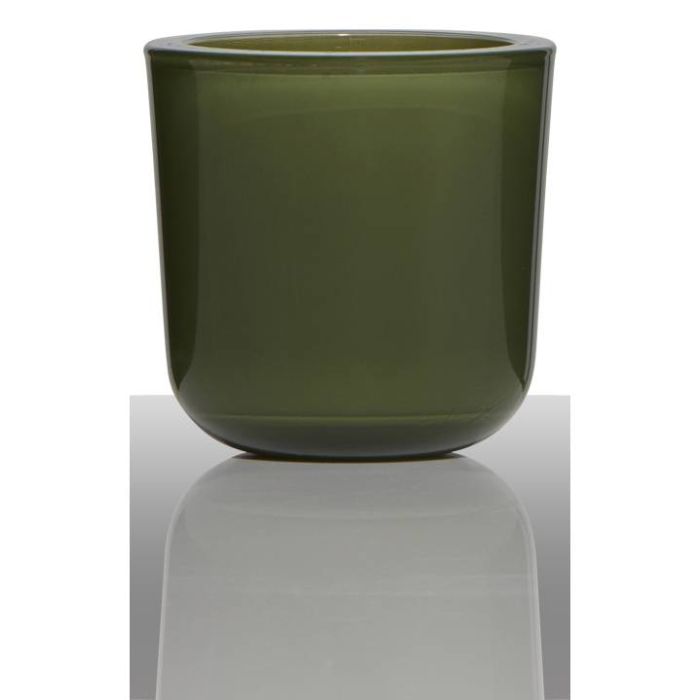 Soporte de cristal para vela de té NICK, verde oliva, 7,5cm, Ø7,5cm