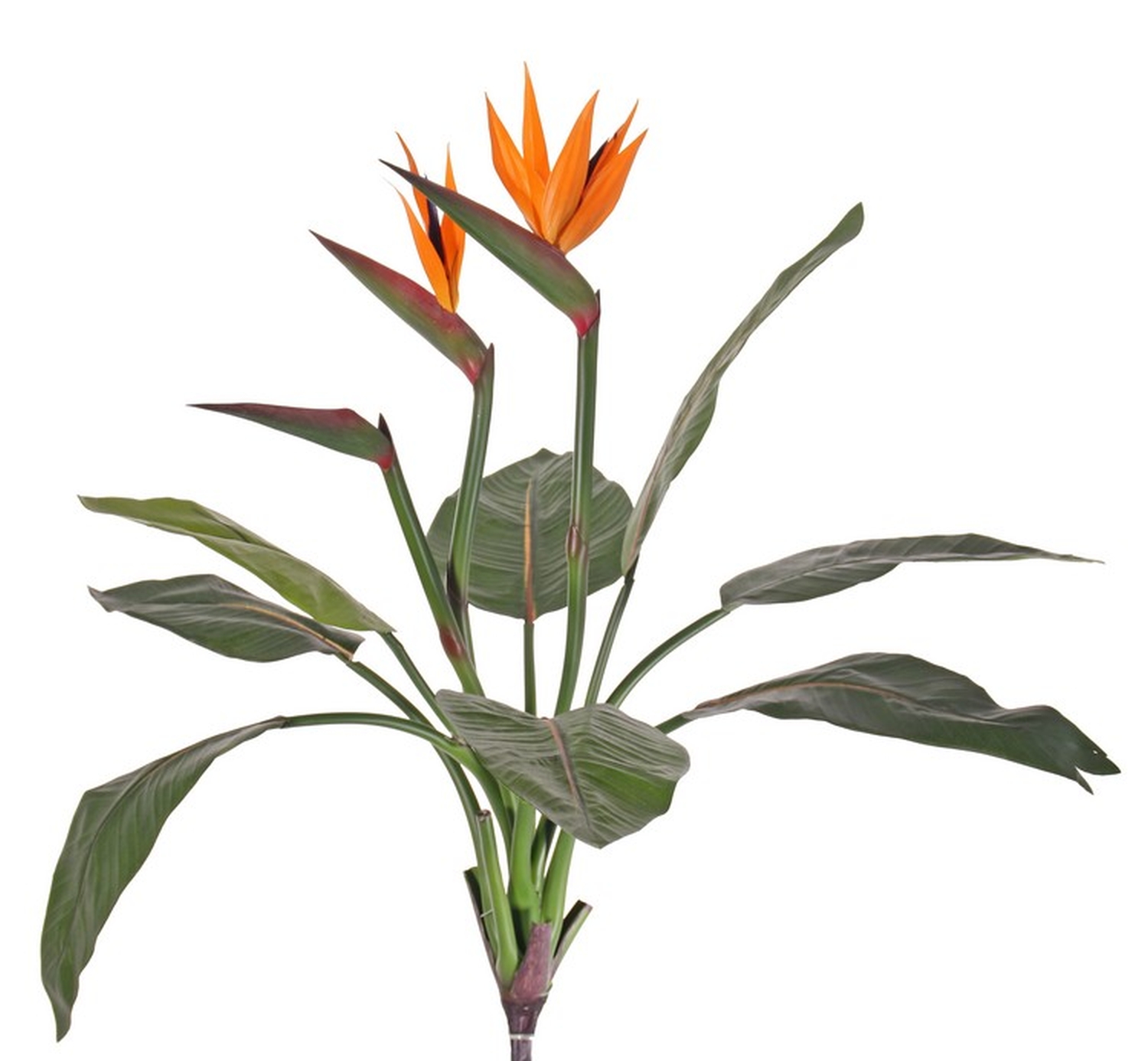La strelitzia falsa NUBIA de color naranja es un atractivo reclamo por ejemplo en un jarrón de suelo.