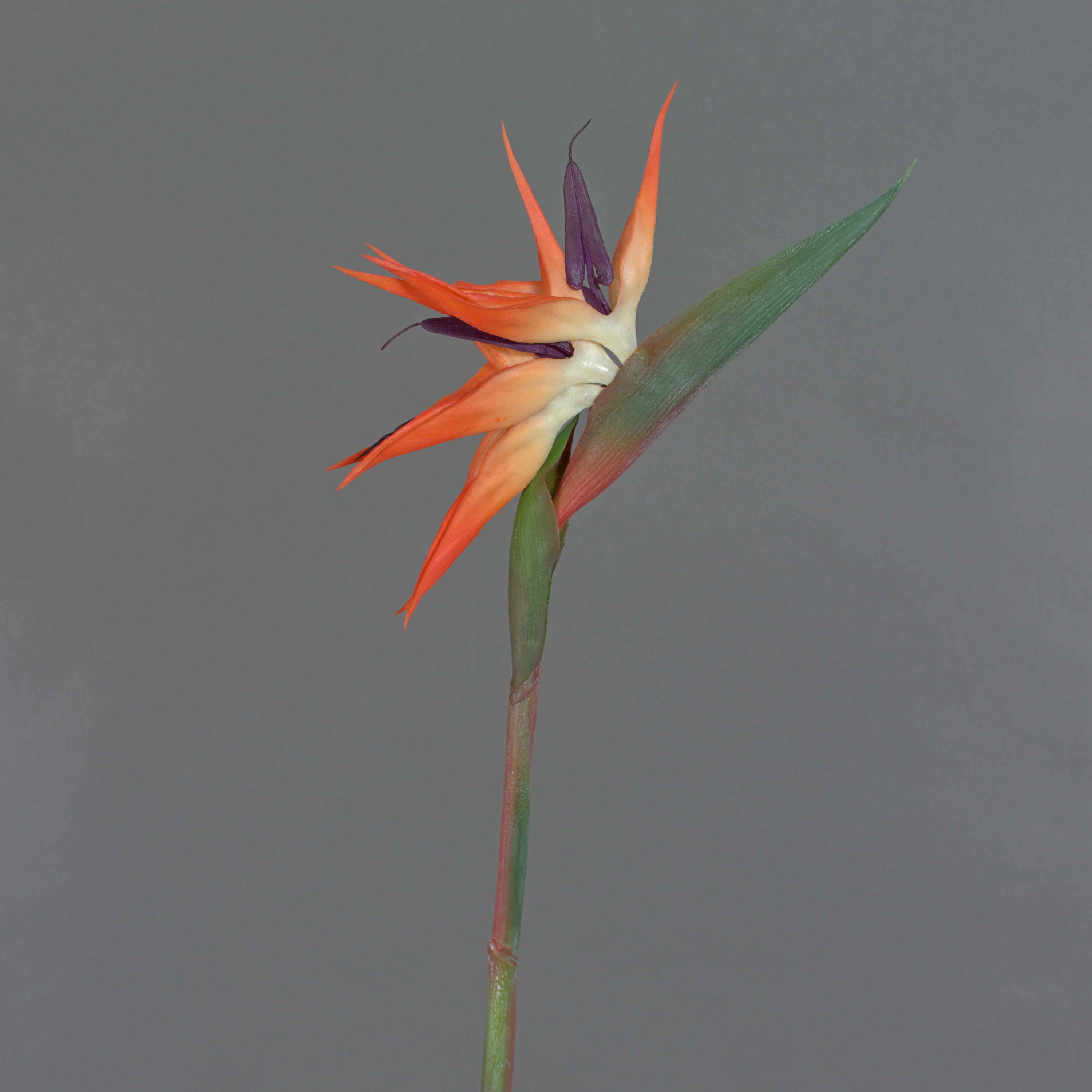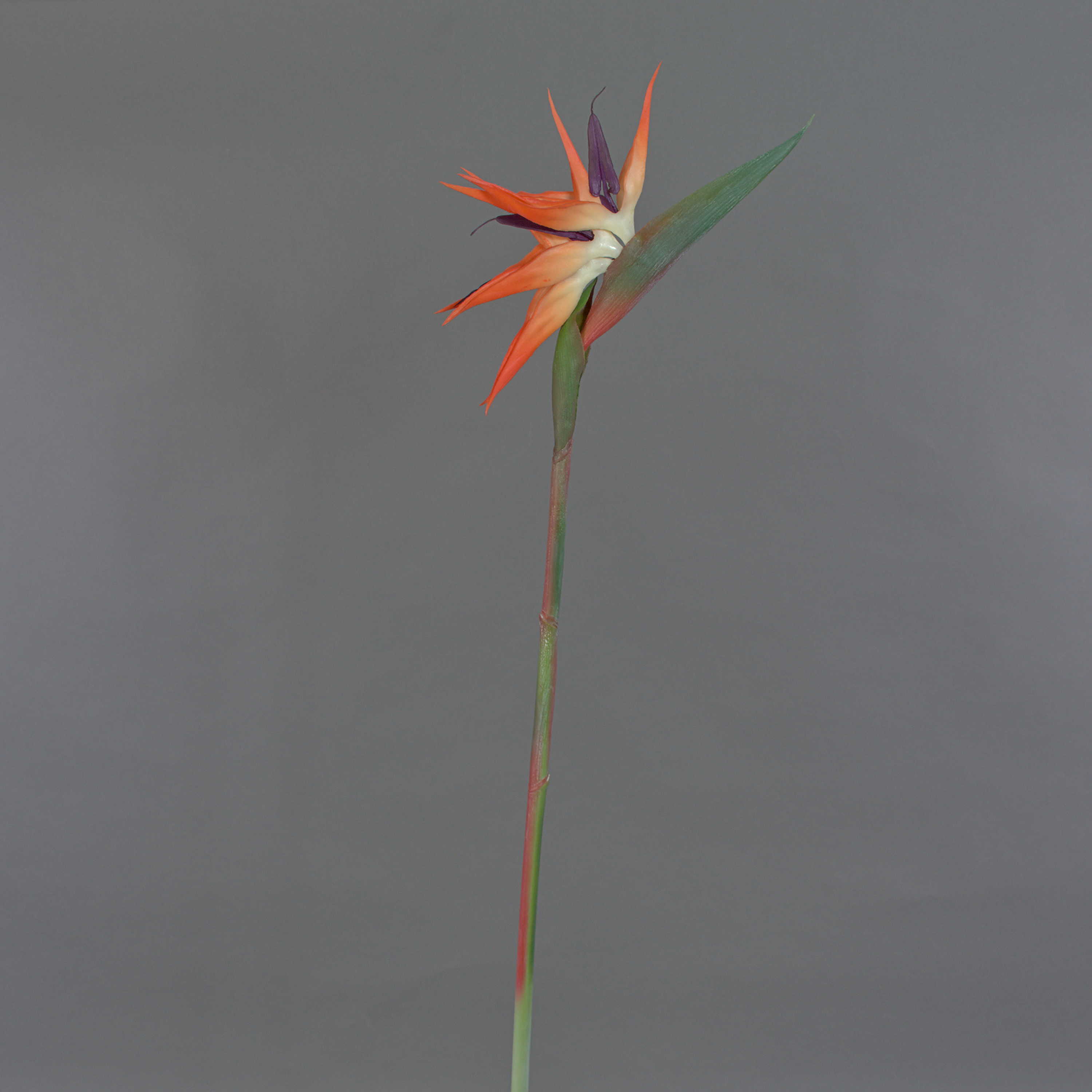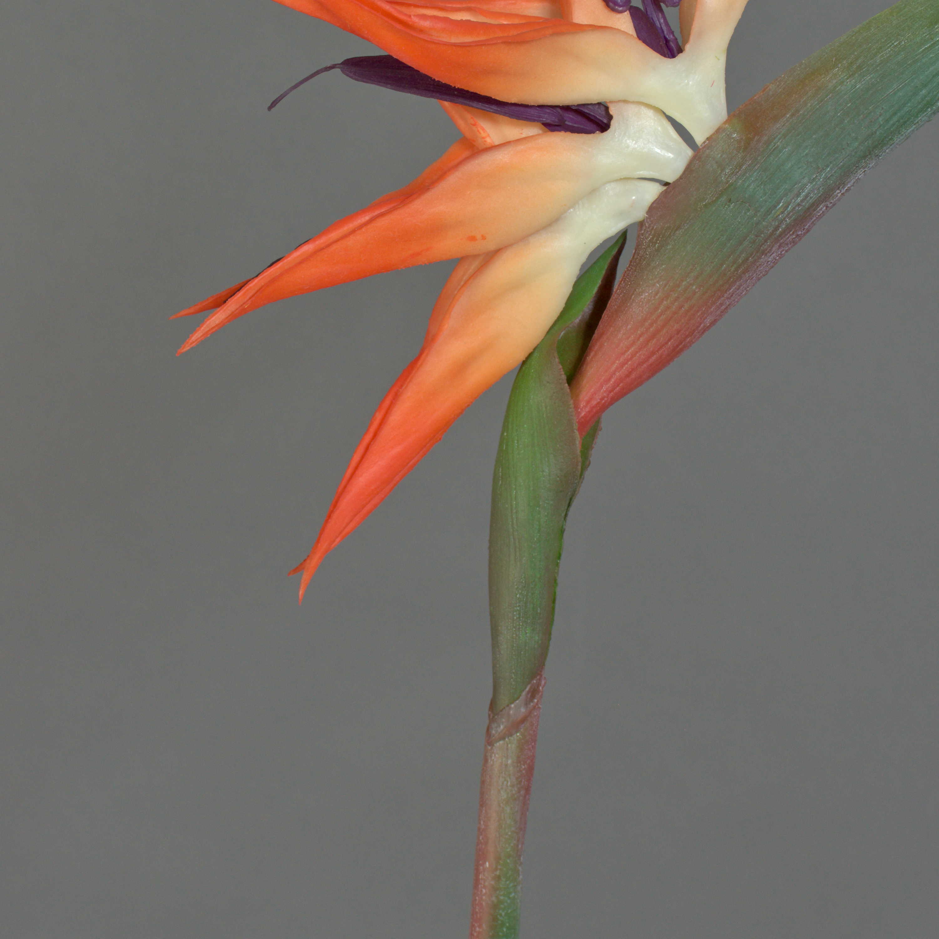 Preciosa estrelicia artificial con flor en amatista / naranja. El ave del paraíso mide un total de aprox. 95 cm de alto.