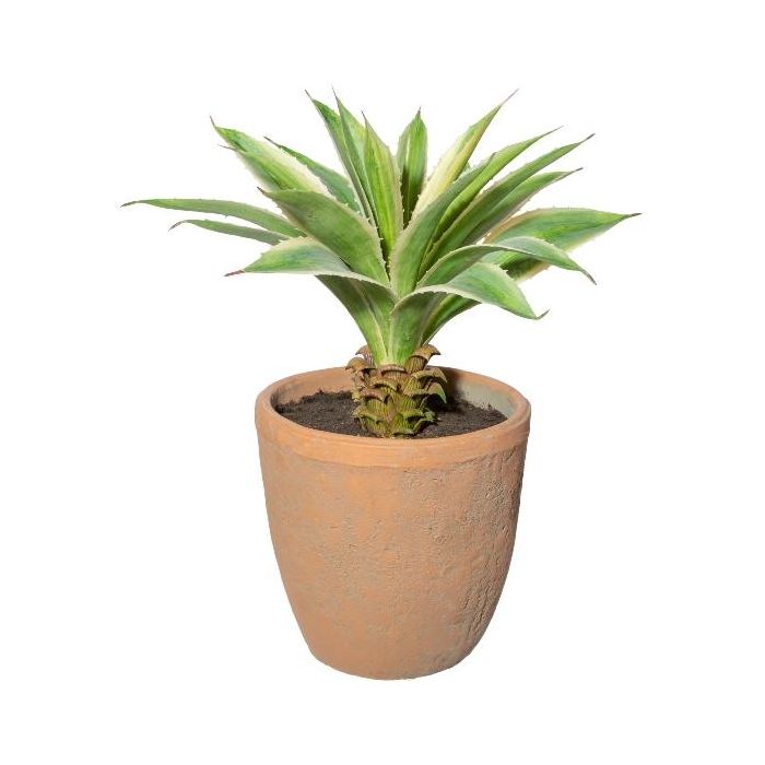 Suculenta artificial Agave americana GRUFT en maceta de terracota, verde-crema, 35 cm