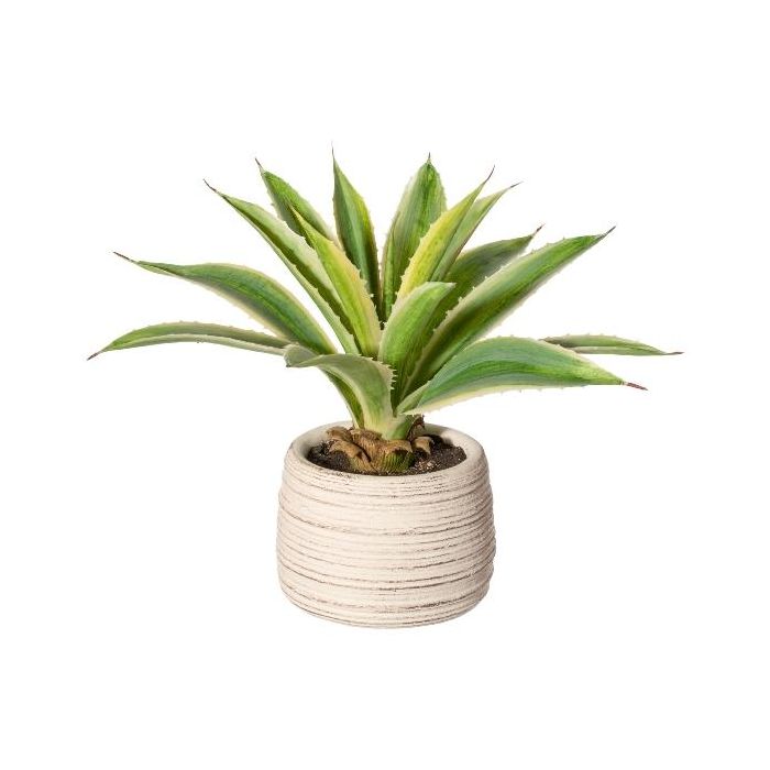 Suculenta artificial Agave americana TRILDON en maceta de cemento, verde-amarillo, 25 cm