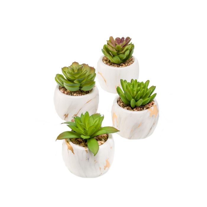 Suculentas artificiales LOYE en maceta de mármol, 4 piezas, verde, 13-15cm