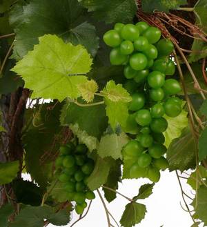 - El tejado de vid de plástico puede combinarse con diferentes plantas, por ejemplo, un arbusto de hiedra para colgar en él o se pueden añadir más ramos de diferentes colores