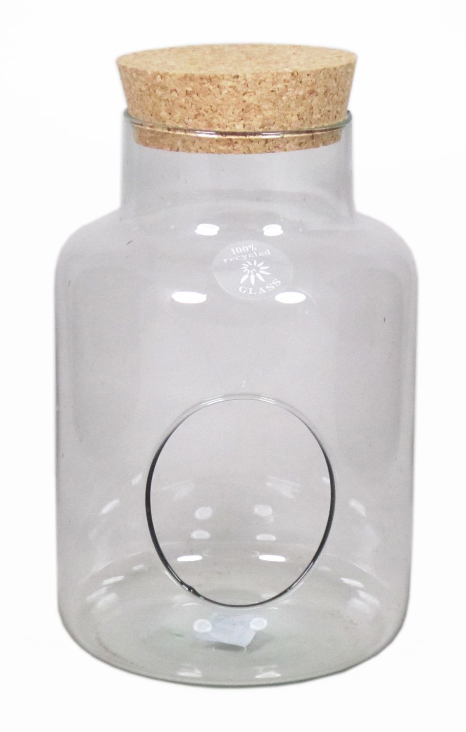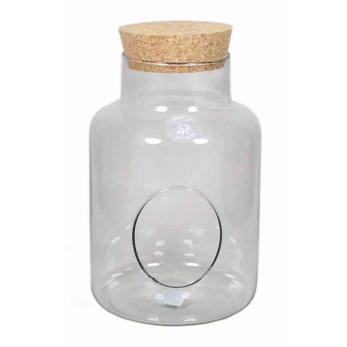 Terrario de cristal para plantas DONELL, tapa de corcho, abertura lateral, transparente, 25cm, Ø17cm