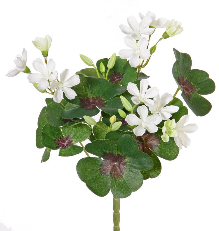 Tréboles sintéticos KARTIKA, con flor, vara de fijación, blanco, 20cm