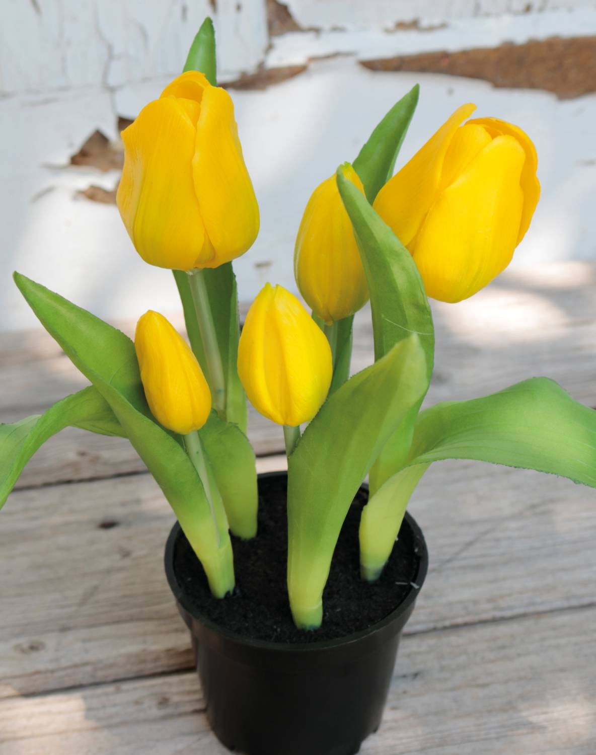 Tulipán artificial CAITLYN en maceta decorativa, amarillo-verde, 25cm, Ø2-6cm