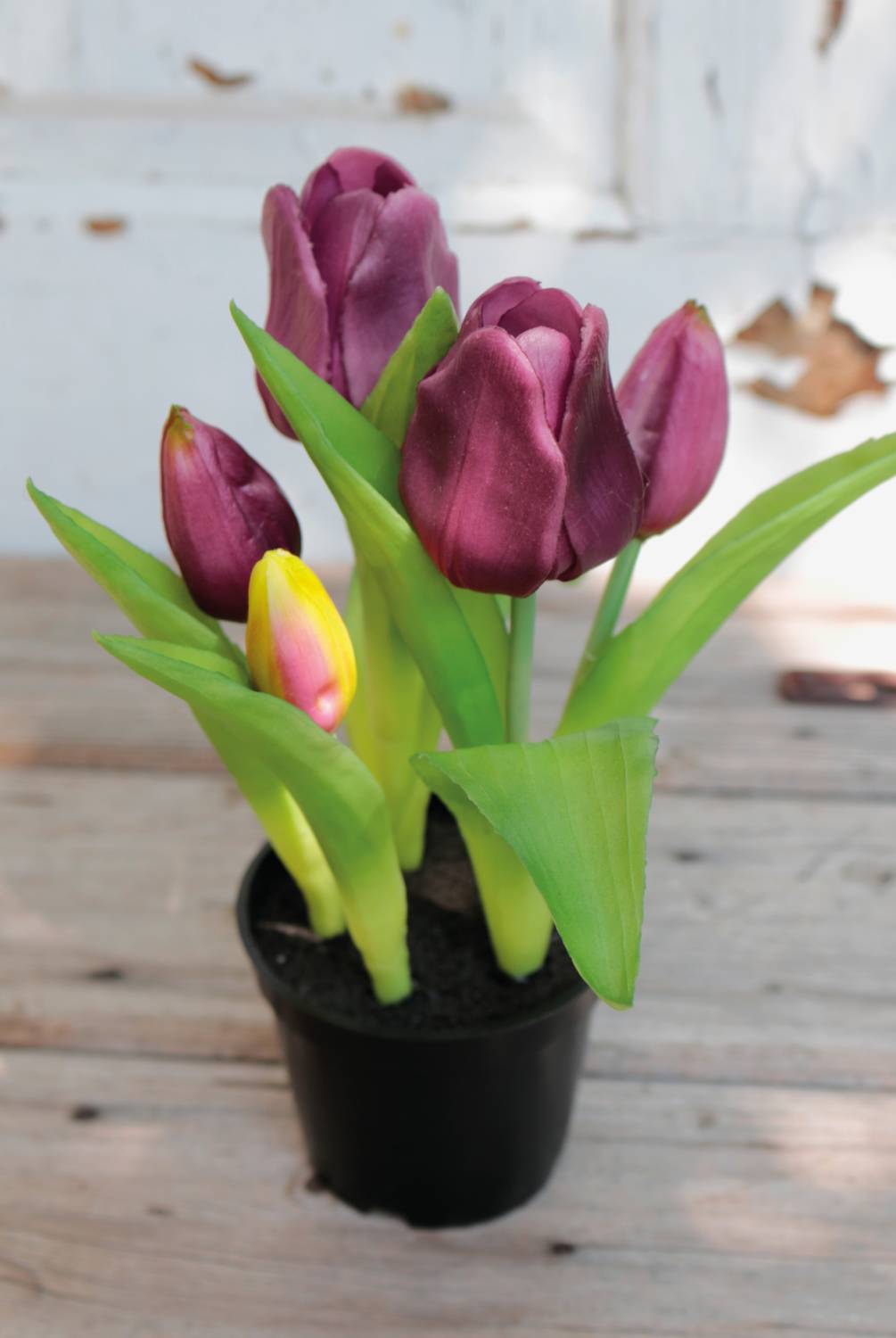 El tulipán de plástico CAITLYN de color violeta-verde posee una altura de 25 cm. La planta artificial crea un ambiente agradable en cada habitación y se entrega en una maceta decorativa.