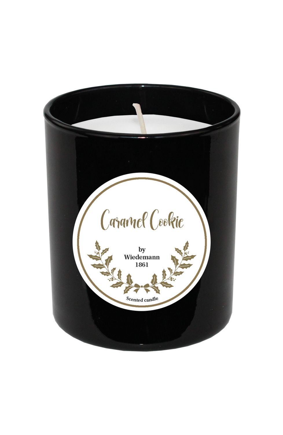 Vaso para vela MELIDA con vela perfumada, galleta de caramelo, blanco y negro, 9,3 cm, Ø7,9 cm, 35 h