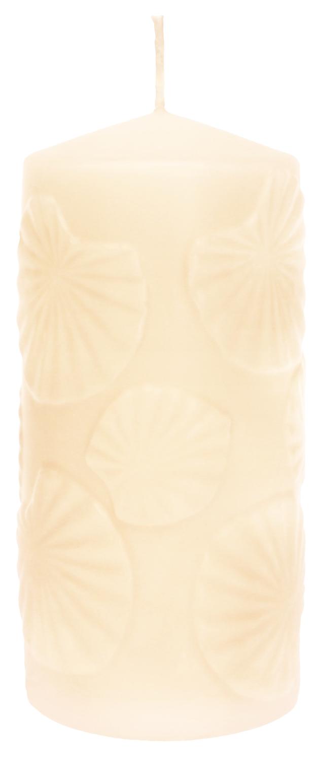 Vela ANDRIANE con motivo de nenúfar, crema, 15 cm, Ø 7 cm, 63 h