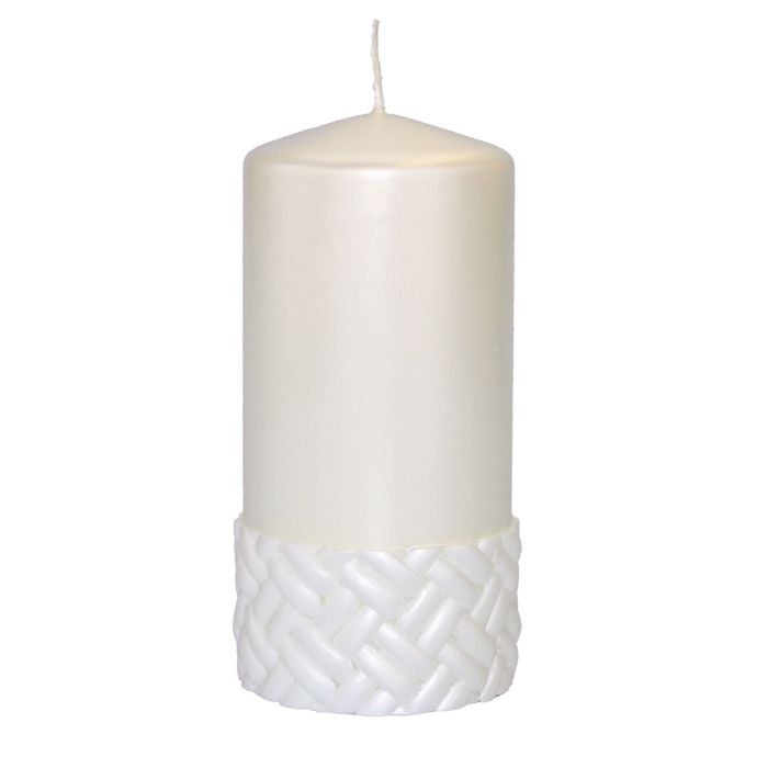 Vela cilíndrica festiva JULIETTA con motivo de seda, marfil, 15 cm, Ø 7 cm, 63 h