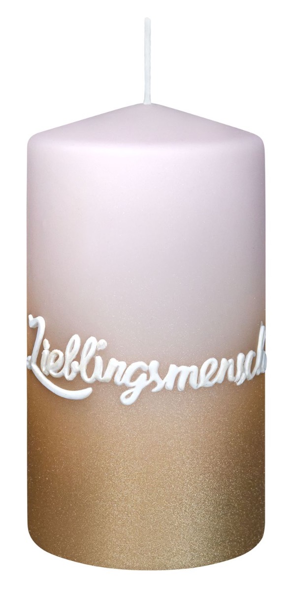 Vela corta JARDENA con inscripción, persona favorita, rosa pálido dorado, 13 cm, Ø 7 cm, 52 h