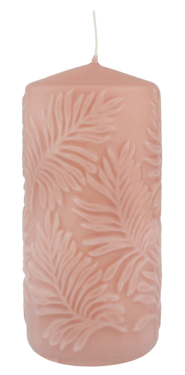 Vela corta MATHIEU con motivo de hoja de palma, rosa, 15 cm, Ø 7 cm, 63 h