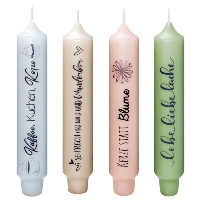Vela perforada con frase KELANI, detalle, 4 velas, 4 frases, multicolor, 16,5 cm, Ø 2,8 cm, 6 h