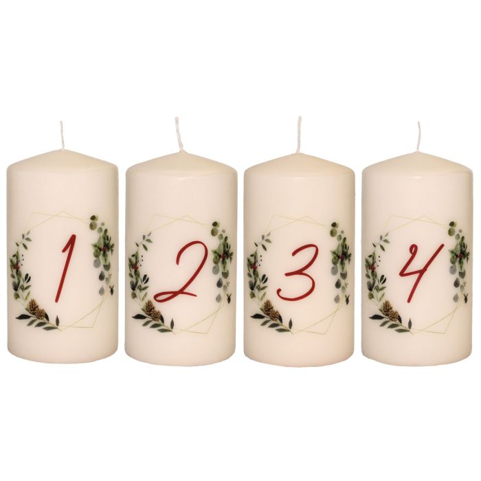Velas de Adviento CHRISTOPHORUS con números impresos, 4 unidades, color crema, 13 cm, Ø 6,8 cm, 52 h - Fabricadas en Alemania