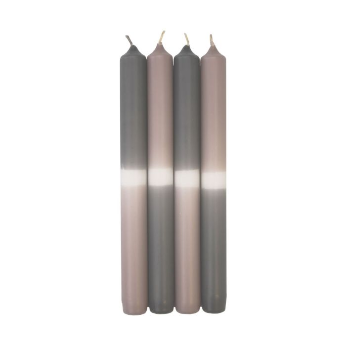 Velas de mesa Dip Dye LISSITA, 4 unidades, gris-gris plateado, 25 cm, Ø 2,3 cm, 11 h