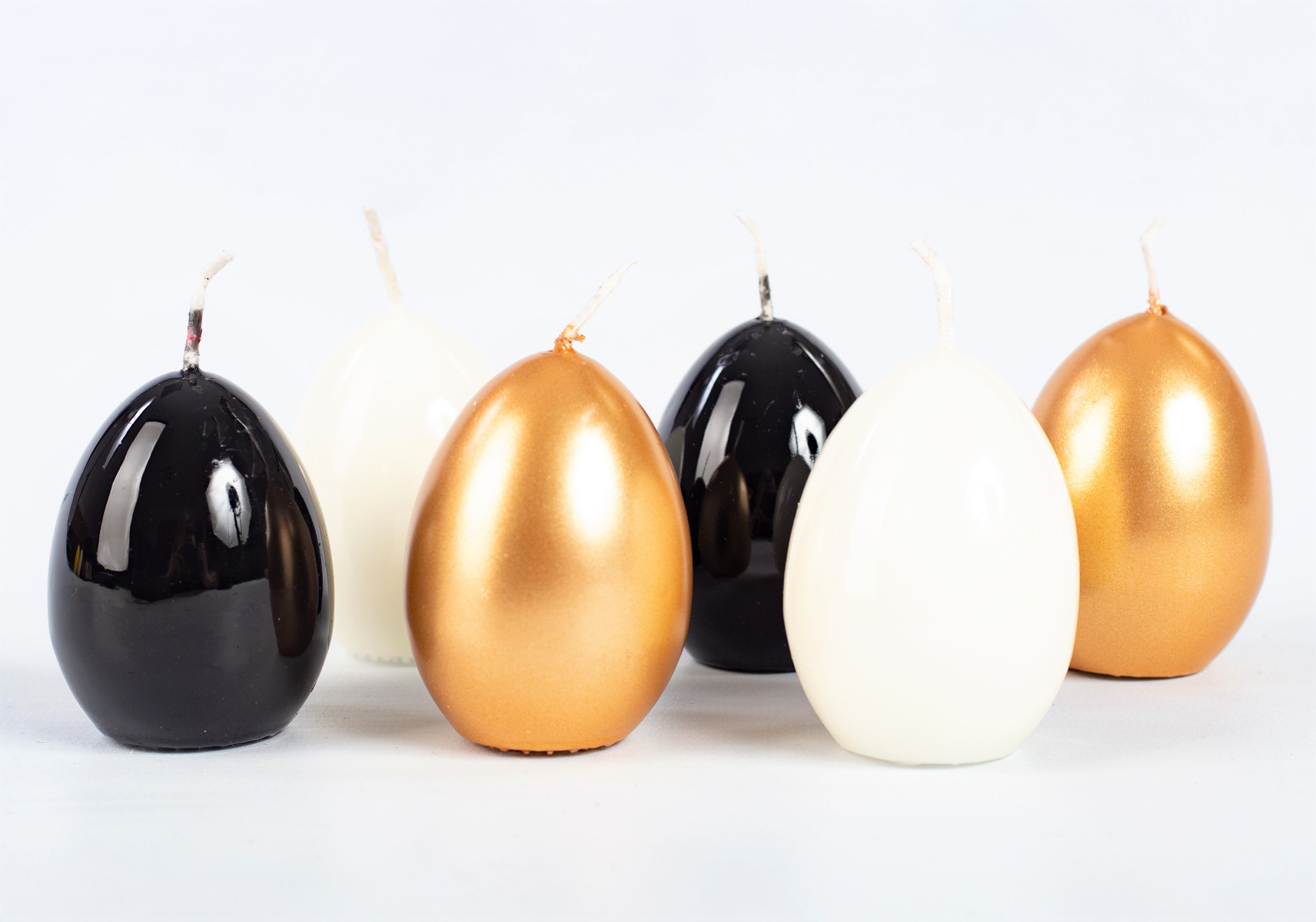 Velas de Pascua LEONITA, 6 unidades, dorado-negro-marfil, 6 cm, 4,5 cm, 7 h - Fabricadas en Alemania