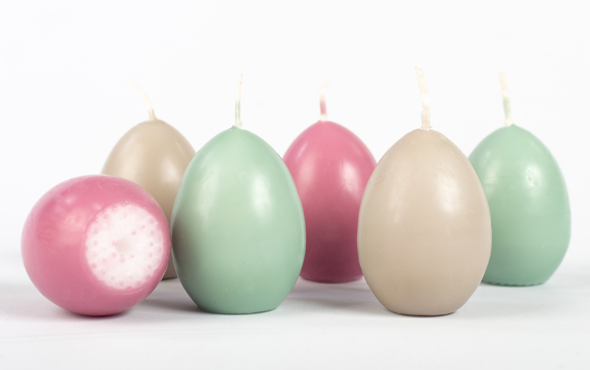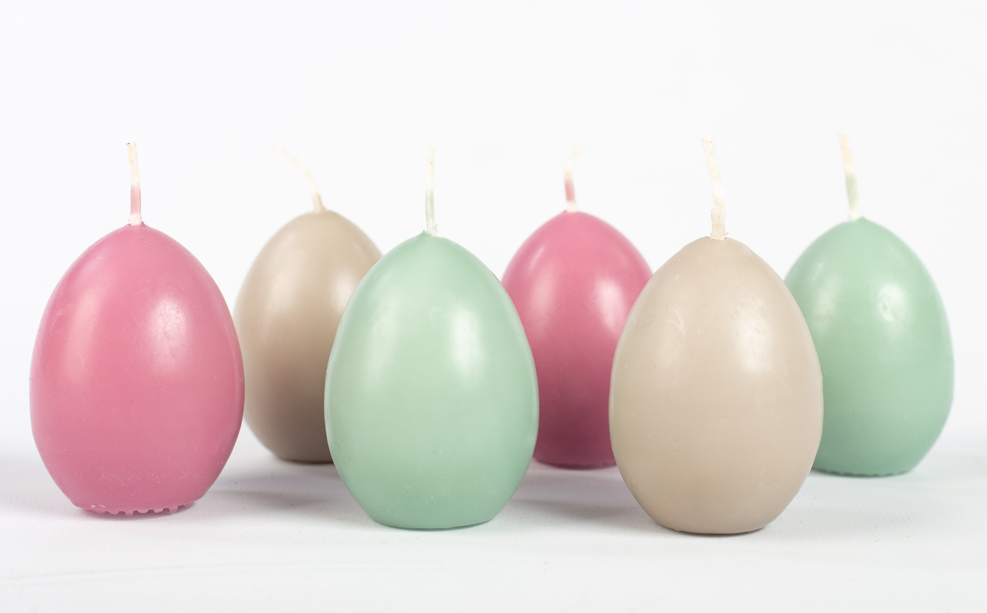 Velas de Pascua LEONITA, 6 unidades, rosa viejo-gris-menta, 6 cm, 4,5 cm, 7 h - Fabricadas en Alemania