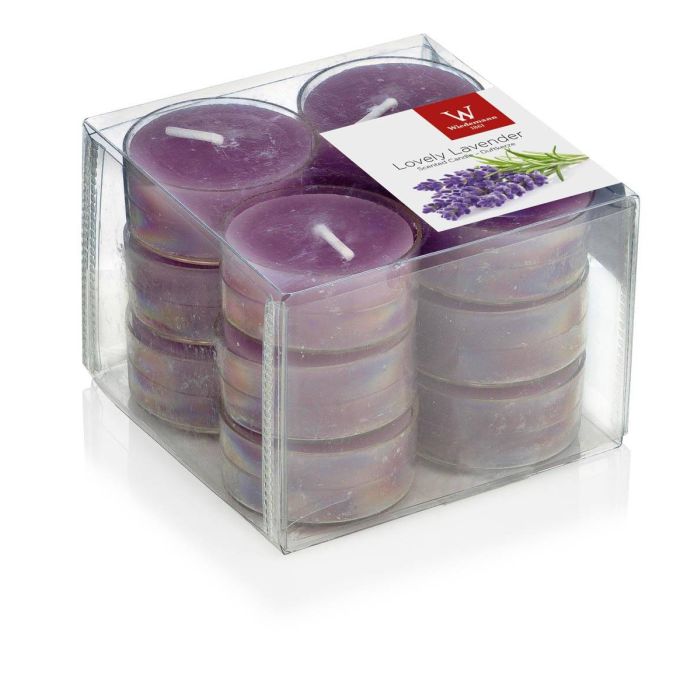 Velas de té ASTRID con olor a lavanda, 12 piezas, violeta, 1,6cm, Ø3,7cm, 4h