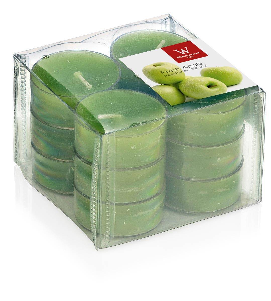 Velas de té ASTRID con olor a manzana verde, 12 piezas, verde, 1,6cm, Ø3,7cm, 4h