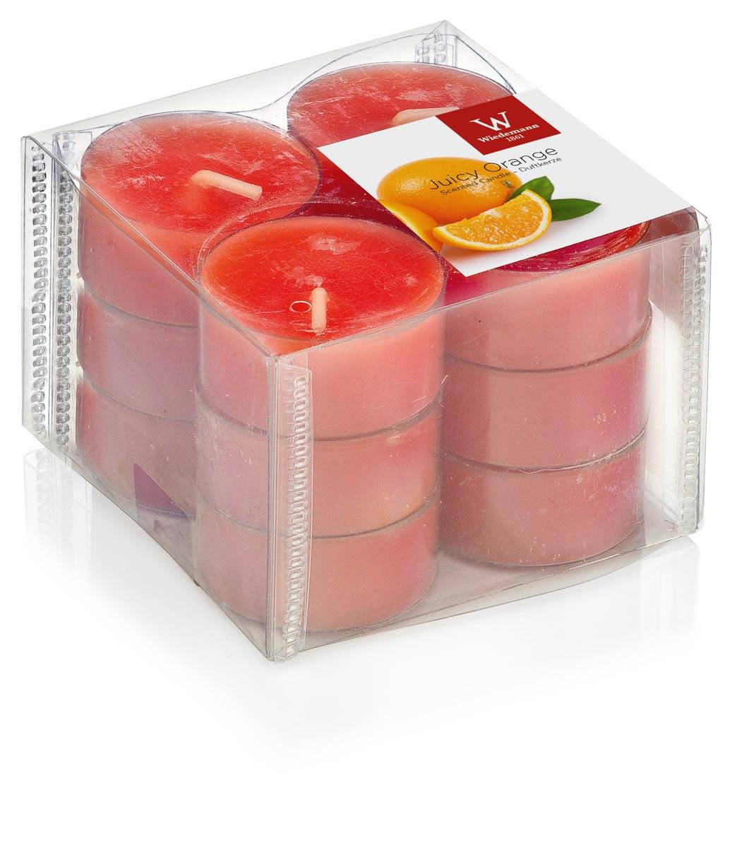Velas de té ASTRID con olor a naranja, 12 piezas, naranja, 1,6cm, Ø3,7cm, 4h