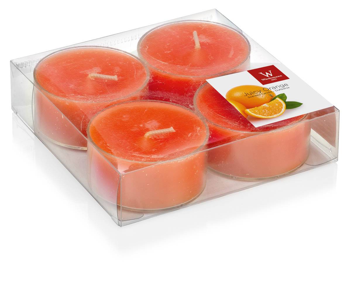 Velas de té ASTRID con olor a naranja, 4 piezas, naranja, 1,9cm, Ø5,7cm, 8h