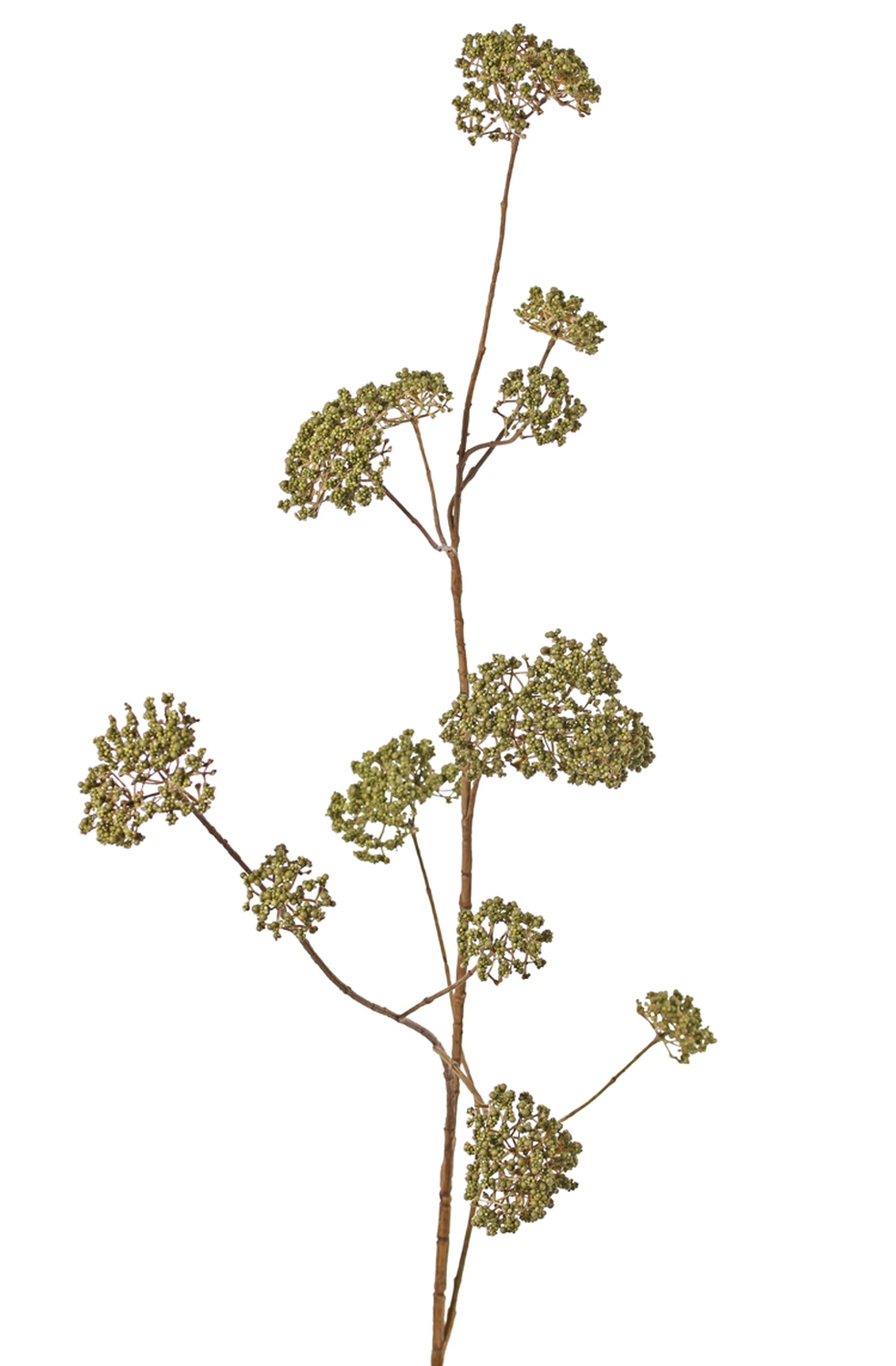 La rama con flores artificiales GALAXINA de color verde posee una dimensión total de aprox. 120 cm y se encuentra unida a un tallo.