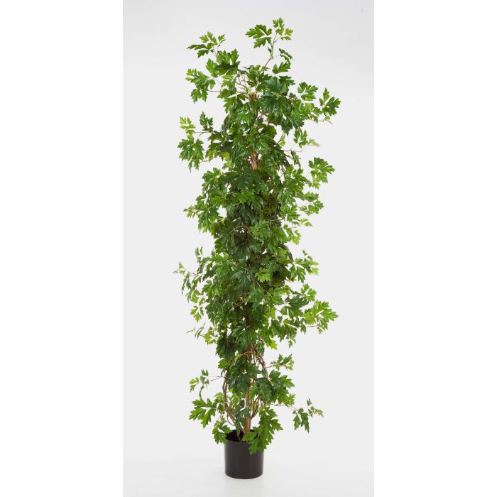 La parra artificial NIKA posee hojas en color verde claro y oscuro y un tronco marrón rodeado por finas ramas. La viña de imitación mide un total aproximado de 160 cm.