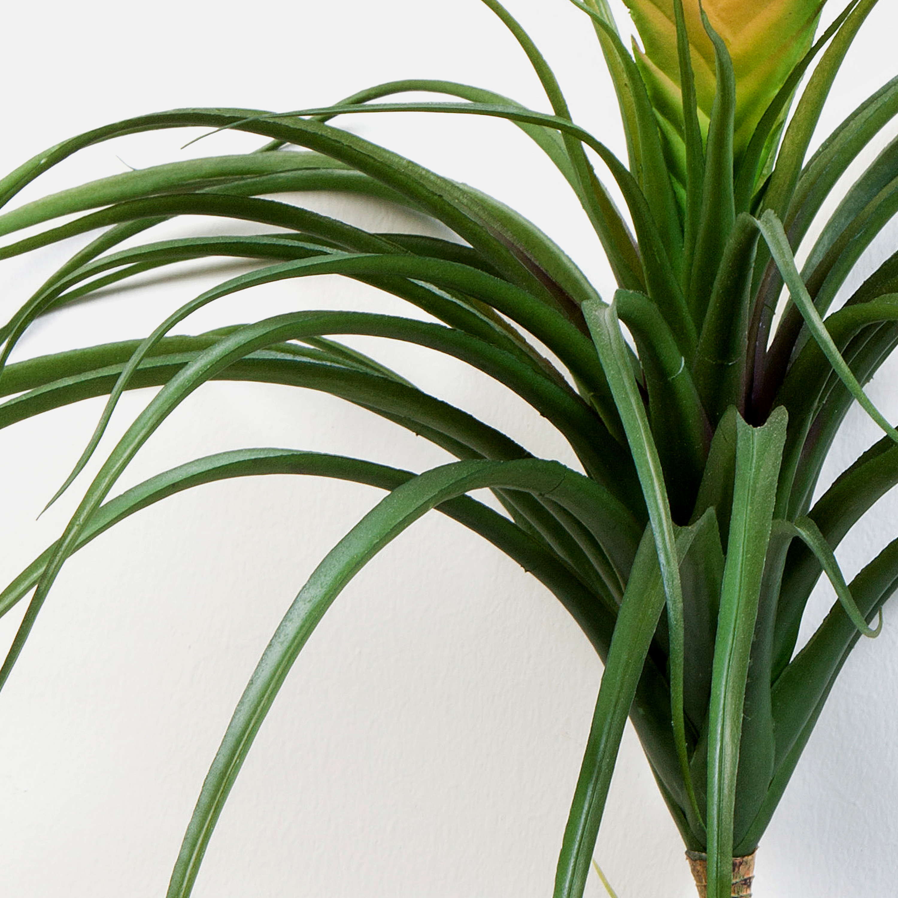 La planta artificial de alta calidad Vriesea BENICIA , con sus numerosas hojas verdes y una inflorescencia ramificada de color amarillo anaranjado, proporciona una atmósfera feliz en su hogar. La planta decorativa es de unos 30 cm de largo y pertenece a la familia Bromeliaceae.