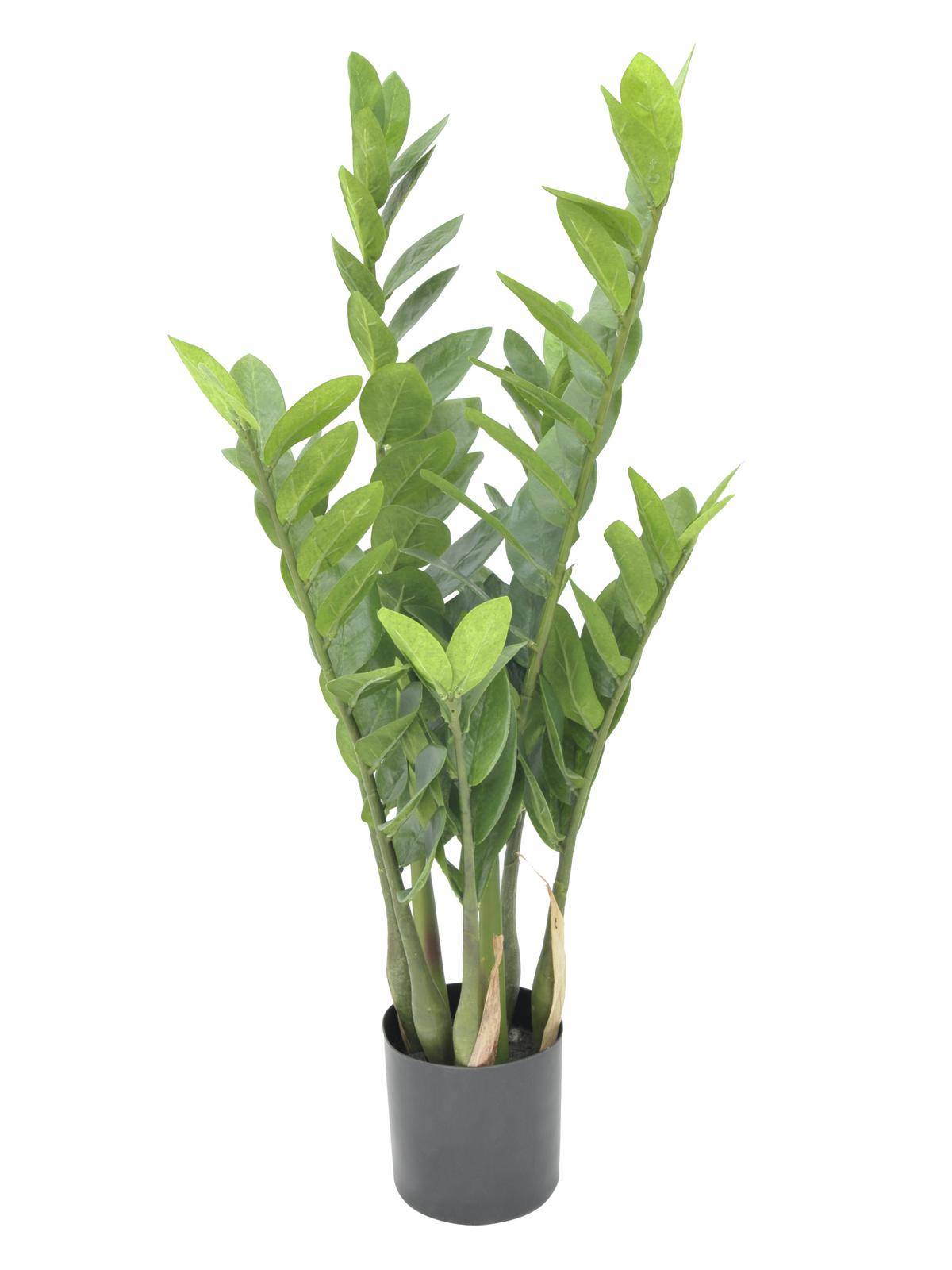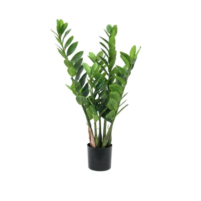 Decorativa zamioculcas artificial de aspecto natural con una altura aproximada de 70 cm. La planta consta de 7 ramificaciones y se entrega en tiesto de cemento para una rápida y sencilla fijación en un portamacetas.